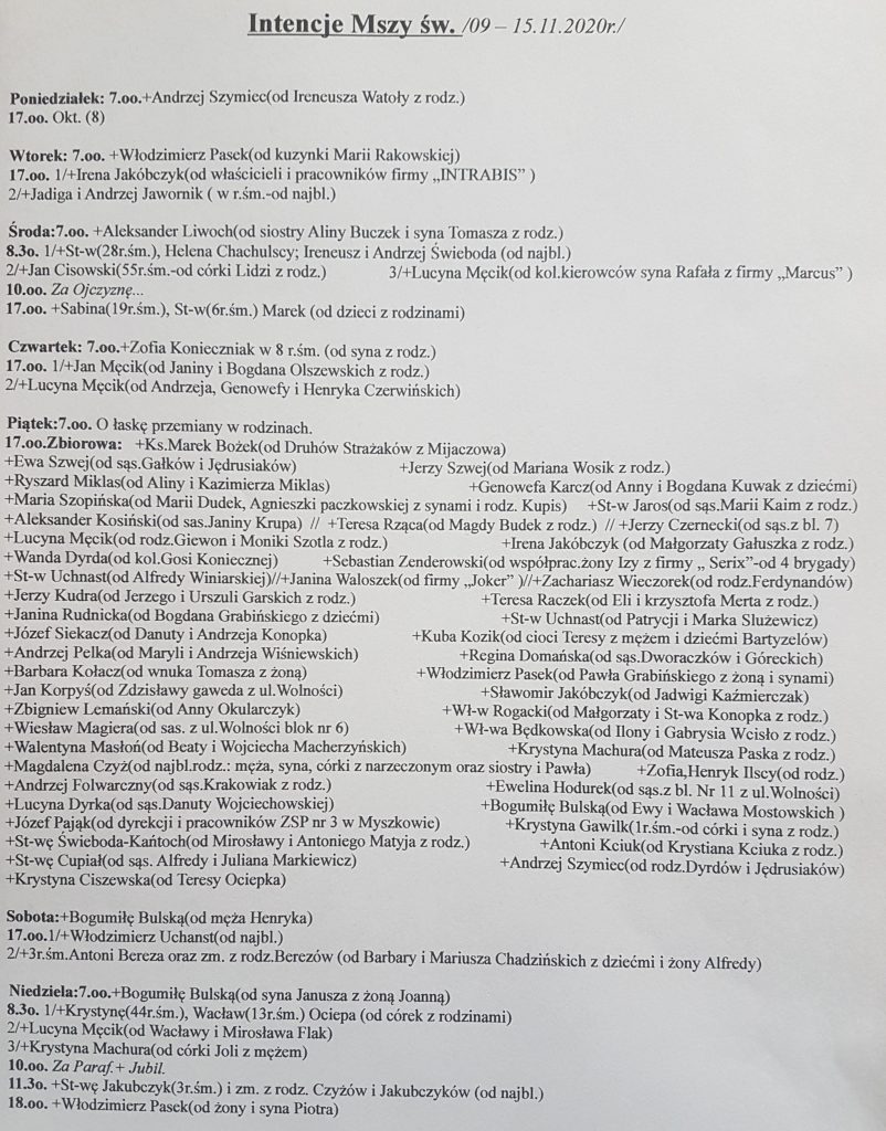 Intencje mszalne 9-15.11.2020 r.