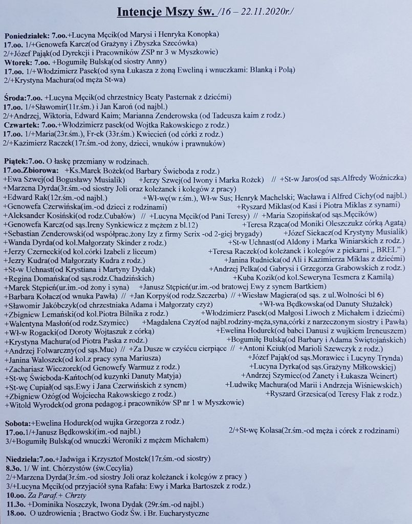 Intencje mszalne 16-22.11.2020 r.