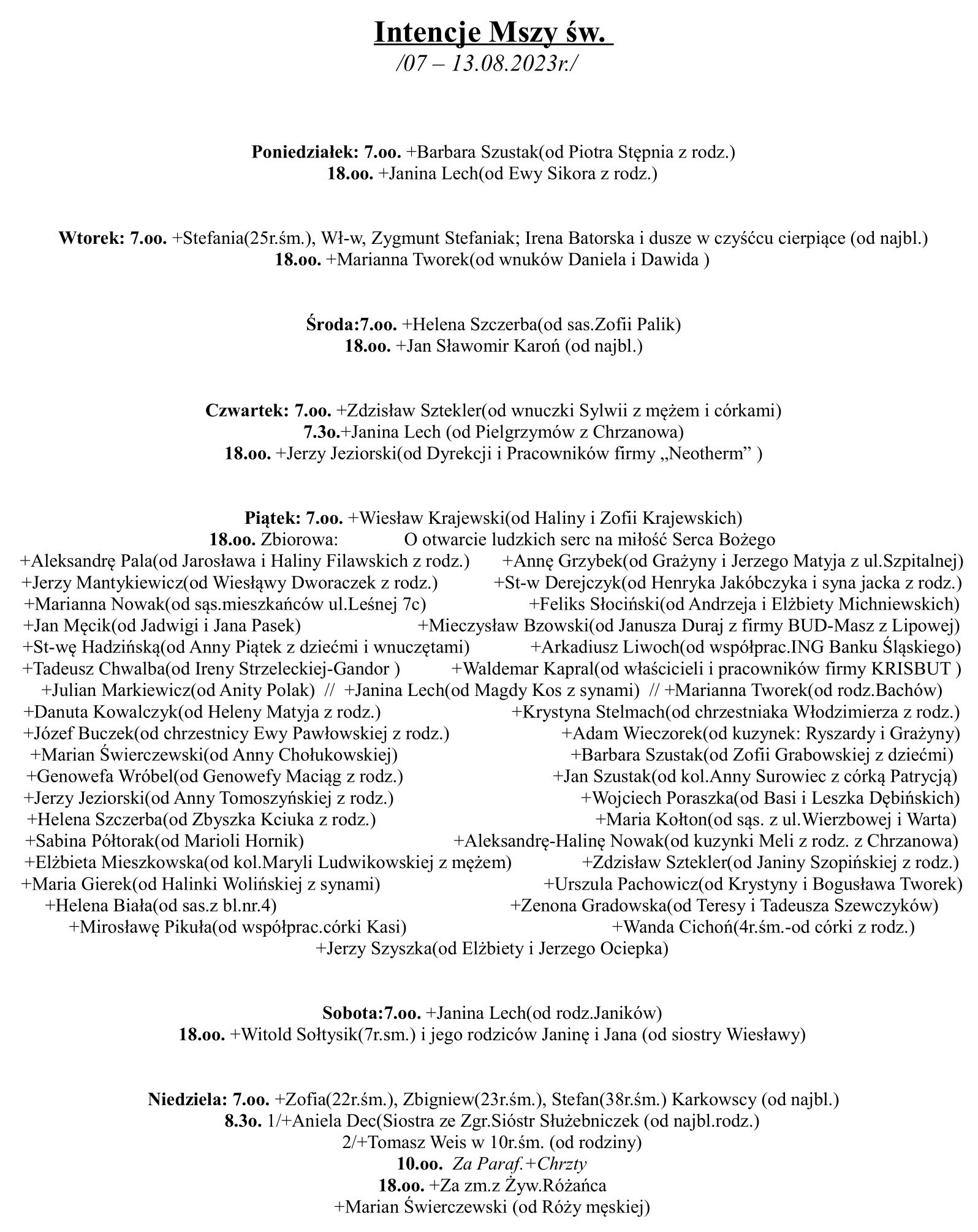 Intencje Mszy Św. /07-13.08.2023r./