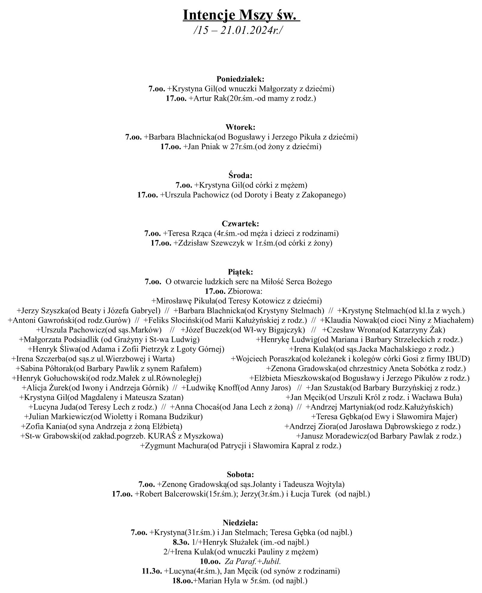 Program wizyty duszpasterskiej w dniach od 15 do 27 stycznia 2024 r.