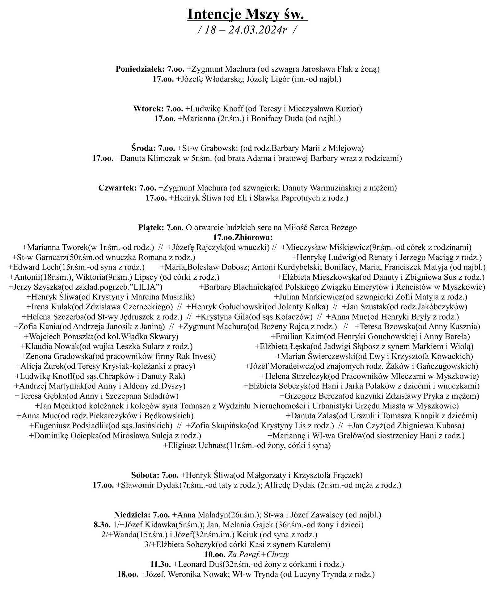 Intencje Mszy Św./18-24.03.2024r./