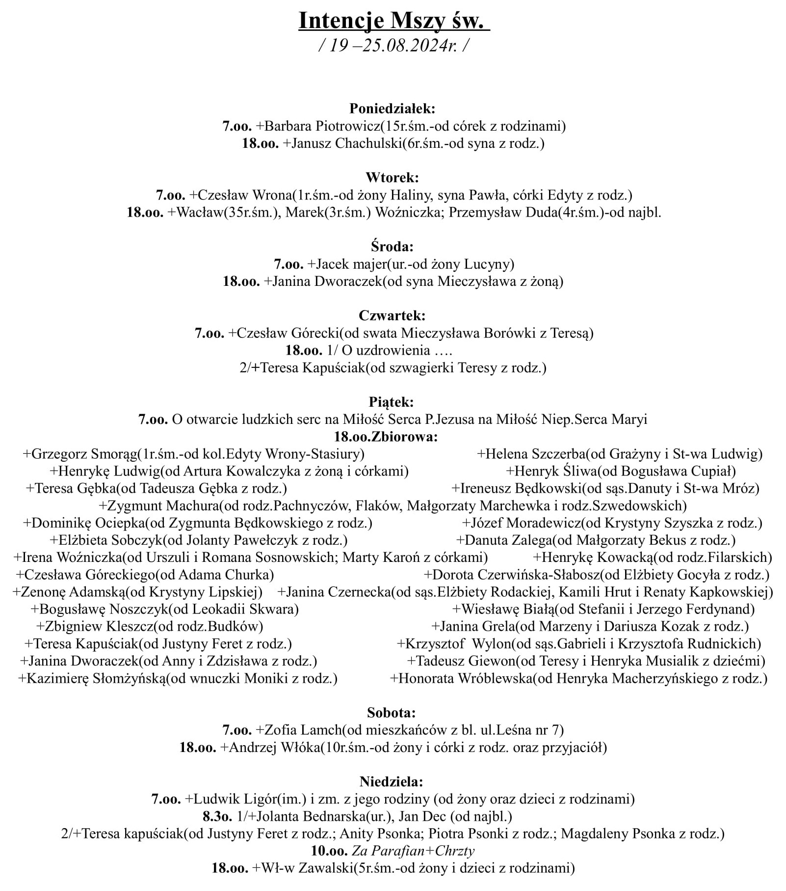 Intencje Mszy Św. /16.08-01.09.2024r./
