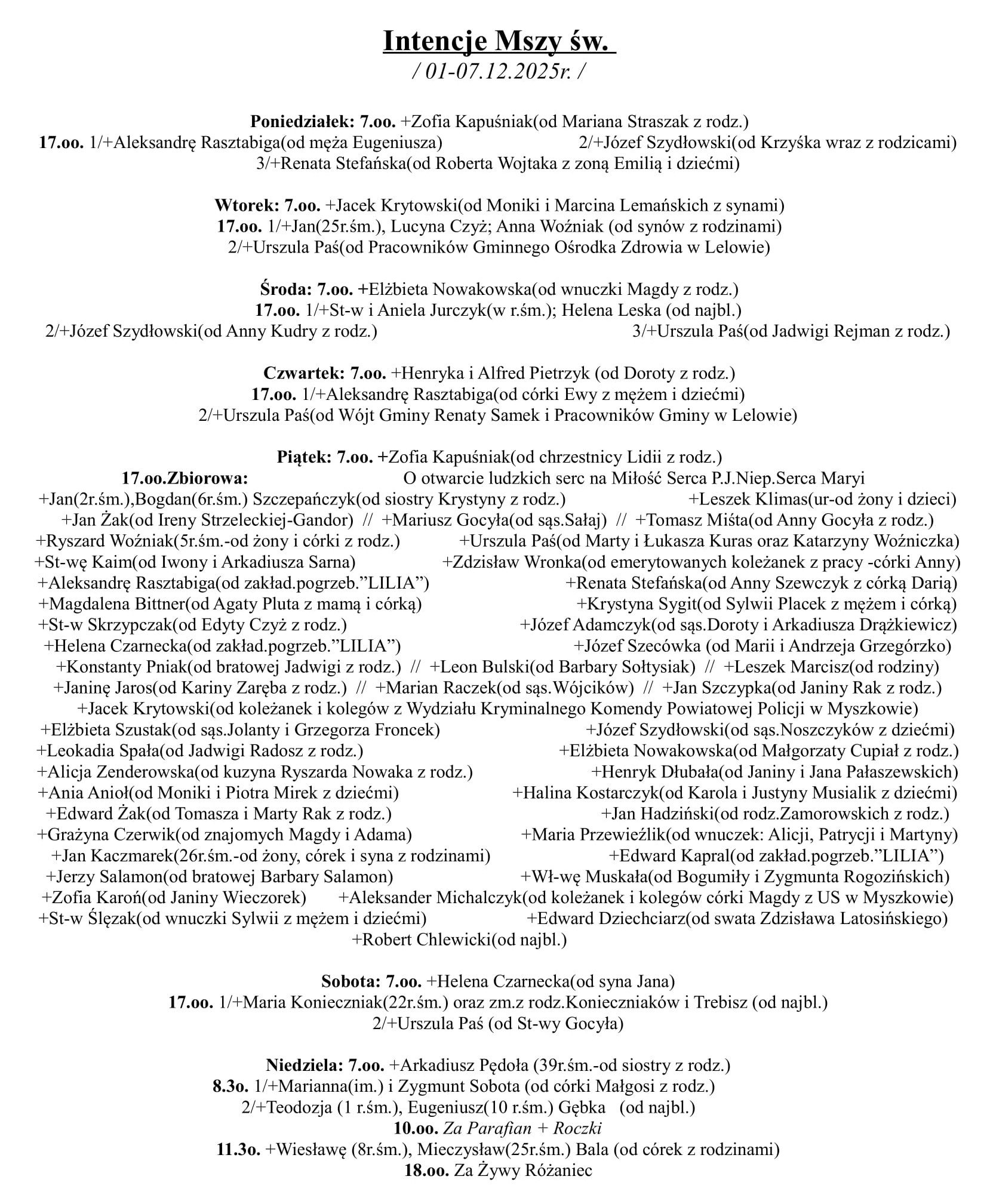 Intencje Mszy św. (08-014.12.2025 r.)