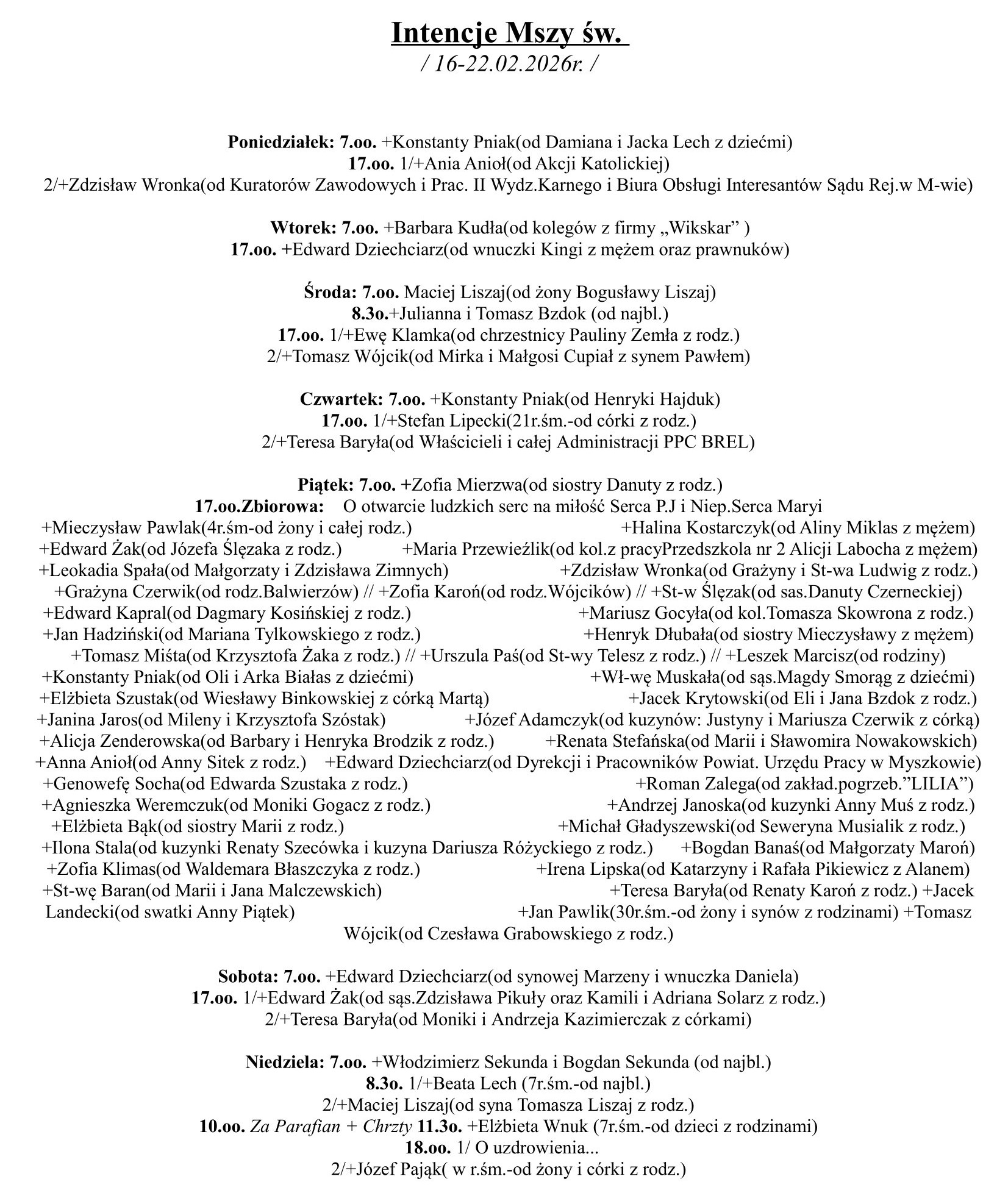 Intencje Mszy św. (16-22.02.2026 r.)