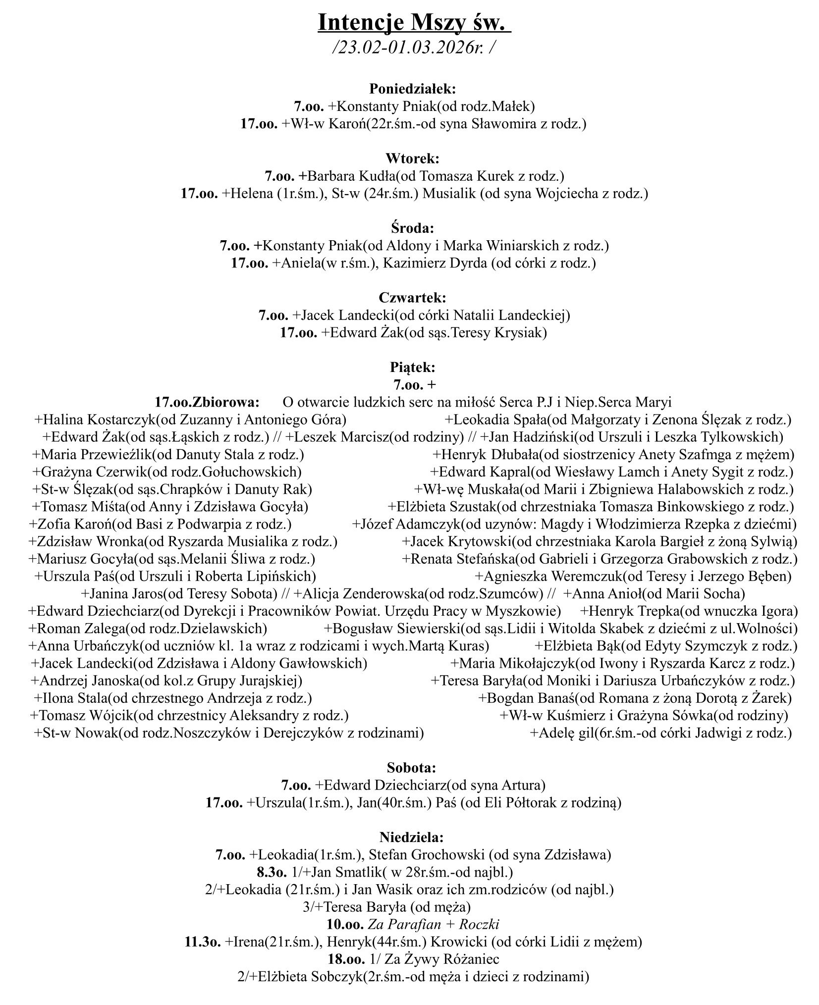 Intencje Mszy św. (23.02-01.03.2026 r.)
